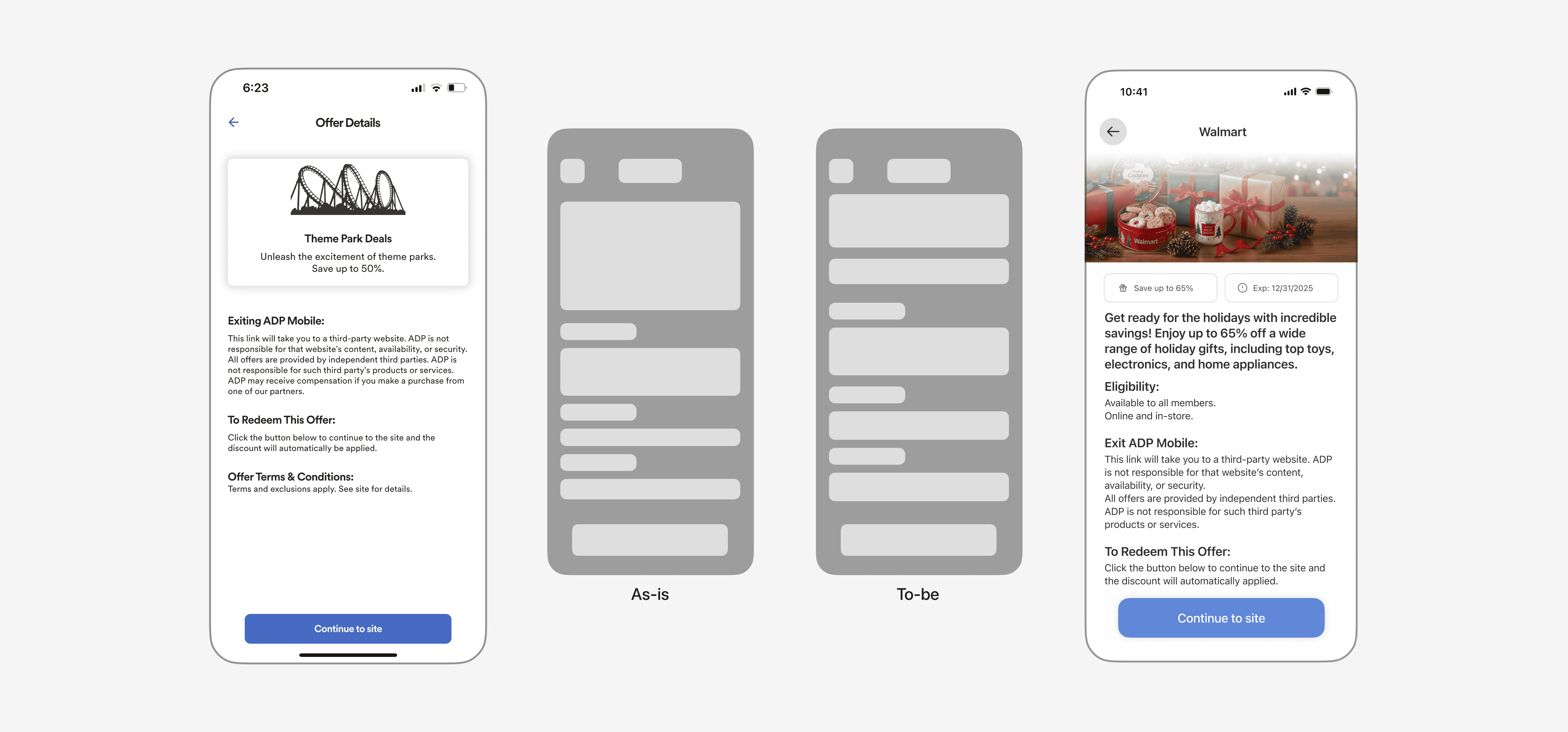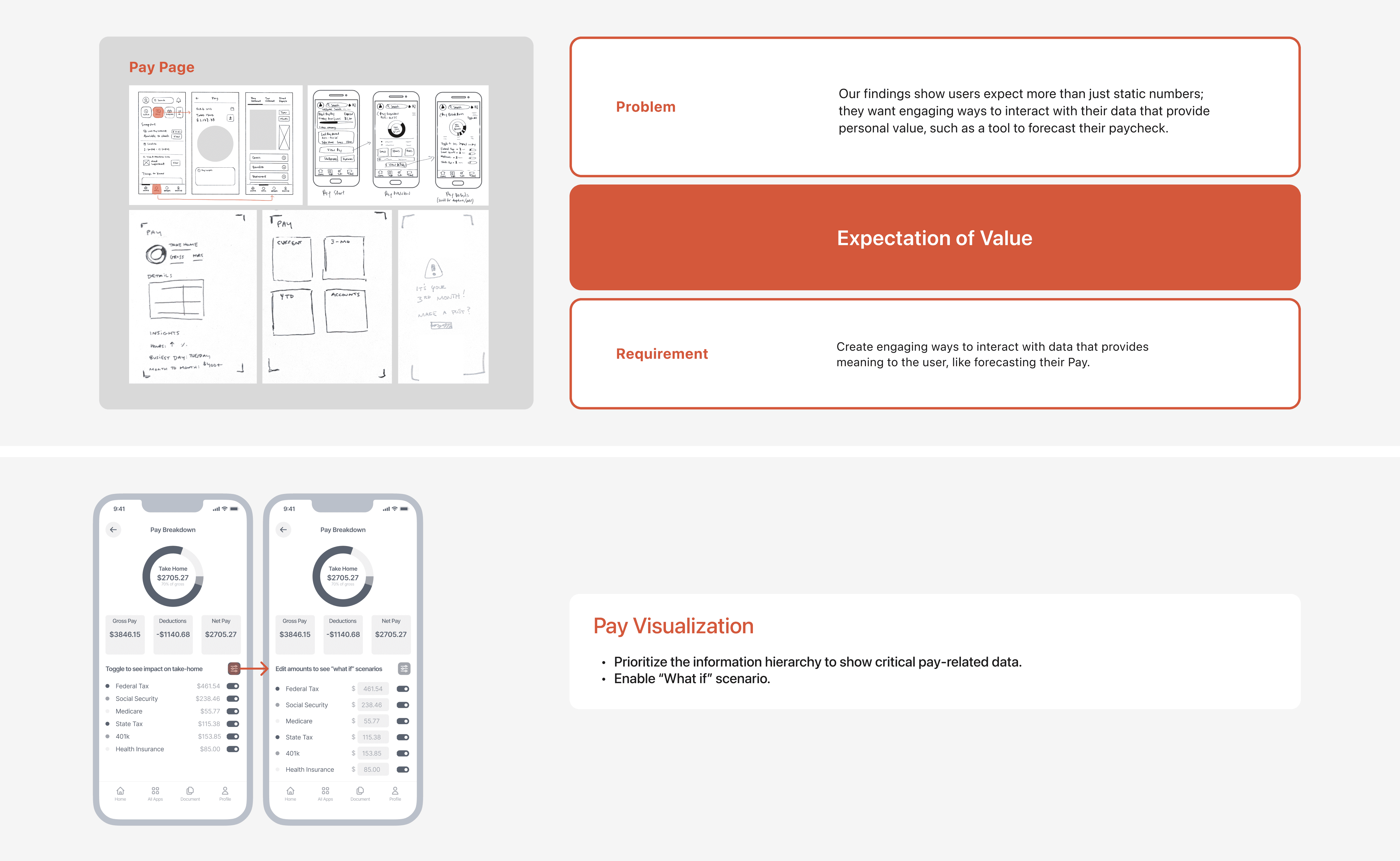 the Home Page, Feature Navigation, Pay Visualization, Offers Page, and Profile.